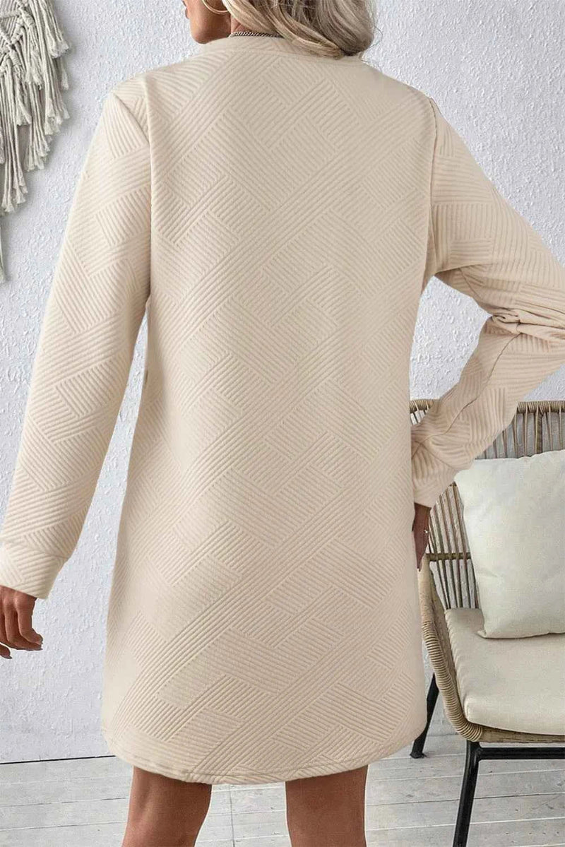 Textured A-line Mini Dress with Long Sleeves - Stylish Cocktail Dresses